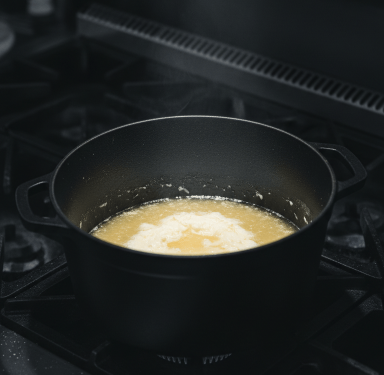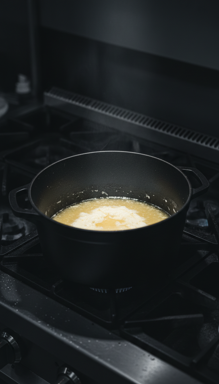 The Amber Shift: Watch the pot surgically. Those sunken milk solids will begin to toast, triggering the Maillard reaction. The liquid will shift from pale yellow to a deep, translucent amber, and it will emit a distinct, nutty aroma. The moment this happens, kill the heat immediately to prevent the solids from burning and ruining the entire batch.